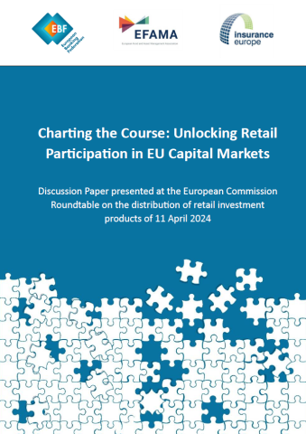 Responding to the call, EBF, EFAMA and Insurance Europe coordinated a dialogue among financial and insurance industry stakeholders, and reached out to consumer organisations. This discussion paper titled "Charting the Course: Unlocking Retail Investment Participation in the EU" is the outcome of this collaborative effort and was presented at a second Roundtable meeting hosted by the European Commission on 11 April 2024.