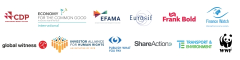 CDP, Economy for the Common Good, EFAMA, Eurosif, Frank Bold, Finance Watch, Global Witness, Investor Alliance for Human Rights, Publish What You Pay, ShareAction, Transport and Environment, WWF