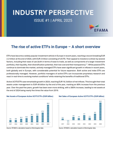 EFAMA is pleased to launch the first edition of its new Industry Perspective research series, entitled “The rise of active ETFs in Europe – A short overview”.